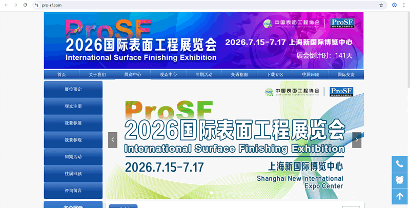 ProSF 2026国际表面工程展览会将于2026年7月15日-17日在上海新国际博览中心由中国表面工程协会举办。本届展会展汇聚电镀、涂装、热喷涂、真空镀、防锈润滑、热浸镀、转化膜等海内外行业材料设备大牌展商,以及涂料成品、涂料辅料、涂料机械等相关行业优质企业。数百家海内外知名菁英展商向行业共同展示新产品、新材料、新技术,体现了当前中国表面工程行业发展的真正实力和水平。