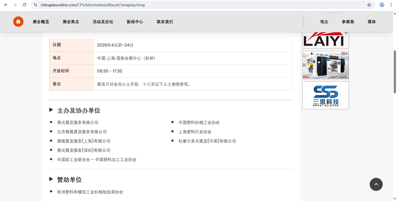 信息转载地址:https://www.chinaplasonline.com/CPS/idx/simp https://www.chinaplasonline.com/CPS/information/AboutChinaplas/simp